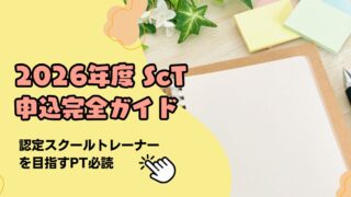 ScT 【2026年度】認定スクールトレーナー(ScT)申込ガイド 3日間限定の「罠」で後悔しないために 2026年度認定スクールトレーナー(ScT)の最新募集要項を解説。昨年、申込期間がわずか3日間と知らずに断念した山梨の理学療法士が、同じミスを防ぐための4ステップや山梨独自の推薦枠ルートを徹底公開。3月14日の一般枠応募に乗り遅れないための必読ガイドです。 2026.03.09 ScT